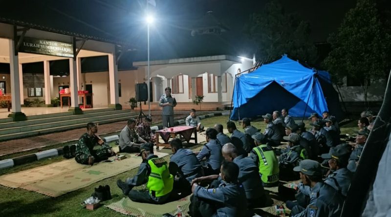 Sleman — Anggota perlindungan masyarakat (Linmas) Se Kalurahan Sumberharjo Kapanewon Prambanan Sleman  mengikuti pelatihan peningkatan kemampuan personel di Halaman Kalurahan tersebut.