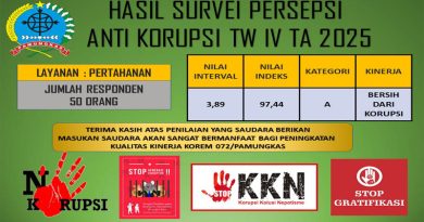 Surabaya, tniad.mil.id – Hidup ini tidak seindah apa yang kita impikan, tetapi tidak sesulit juga apa yang kita khawatirkan. Demikian yang dikatakan oleh Kasad, Jendral TNI Dr. Dudung Abdurachman, S.E, M.M, kepada Para Babinsa dalam pengarahannya di hadapan 1.684 prajurit dan PNS jajaran Korem 084/Bhaskara Jaya, Senin (20/6/2022). Pada kesempatan tersebut, Kasad mengapresiasi berbagai upaya dan langkah-langkah yang telah dilakukan jajaran Kodam V/Brawijaya dalam mengatasi berbagai permasalahan di masyarakat diantaranya kelangkaan dan mahalnya minyak goreng di pasaran.