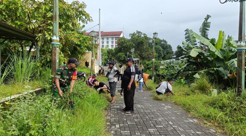Sleman — Suasana semangat gotong royong tampak di Padukuhan Gemawang Sinduadi Mlati Sleman ketika warga saling bahu membersihkan lingkungan karena kehadiran Babinsa dalam kegiatan tersebut.