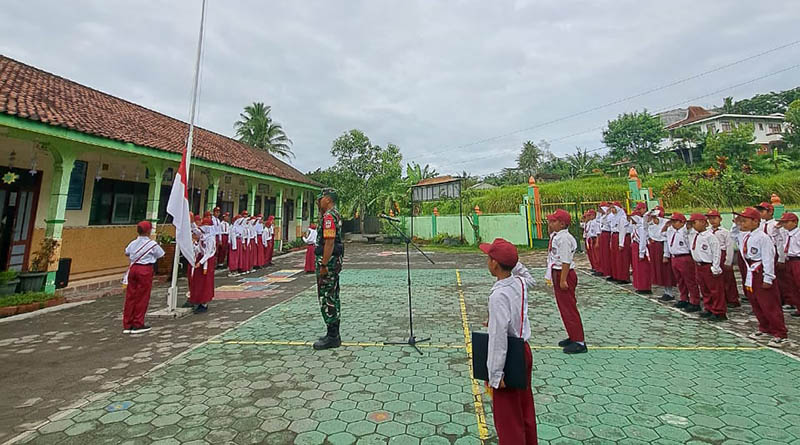 Babinsa Koramil Cangkringan Sleman Irup Upacara di Sekolah