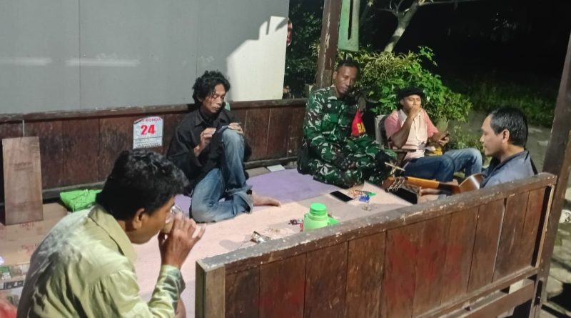Kedatangan Babinsa itu tampak disambut hangat dan antusias oleh warga. Dengan tampil apa adanya Babinsa itu kemudian mengajak para warga untuk berdiskusi sembari menikmati kopi dengan santai di pos kamling.