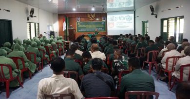 “TNI membangun desa artinya kembalinya TNI ke rumah untuk membangun rakyat yang berdedikasi membesarkan yang diwujudkan melalui bentuk pembangunan fisik berupa infrastruktur serta SDM,” tutur bupati.