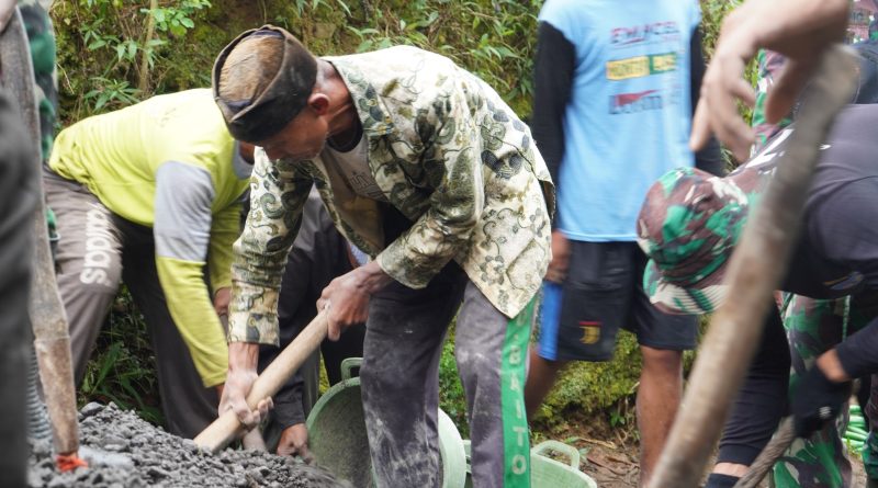 TEMANGGUNG – Di tengah hiruk-pikuk suara cangkul dan molen adukan semen, sosok renta itu mencuri perhatian. Dialah Mbah Muhroni (78), warga Desa Kemloko, Kecamatan Tembarak, yang tanpa ragu ikut bergotong royong bersama Satgas TMMD Reguler ke-125 dalam pengecoran jalan penghubung antara Desa Kemloko dan Banaran, Tembarak, Temanggung. Kamis (31/07/2025).