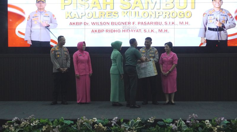 Bupati Kulon Progo Dr. R. Agung Setyawan, S.T., M.Sc., M.M., saya atas nama pribadi dan Pemkab serta masyarakat Kulon Progo, menyampaikan terima kasih dan penghargaan kepada AKBP Dr. Wilson Bugner F. Pasaribu, S.I.K, M.H., atas pengabdian, dedikasi dan kontribusi selama menjabat Kapolres Kulon Progo. Mohonan maaf apabila terdapat tutur kata, sikap, maupun kebijakan yang kurang berkenan. Kami doakan dalam mengemban amanah dan tugas di tempat yang baru, diberikan kelancaran, kekuatan, serta senantiasa dilimpahi kesehatan dan kebahagiaan untuk Bapak beserta seuruh keluarga.