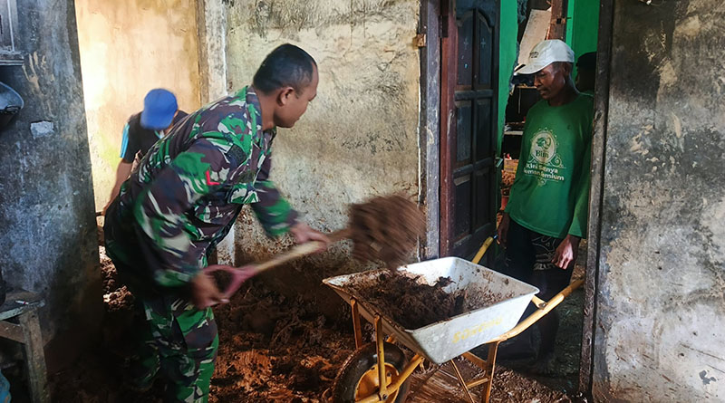 Melihat kondisi tersebut, Kapten Arm Suyitno segera mengerahkan personel Koramil 03/Mojotengah untuk turun ke lokasi dan melakukan karya bakti bersama warga setempat. Personel TNI bahu-membahu membersihkan tumpukan tanah dan batu yang menimpa rumah korban.