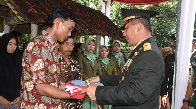 Sebagai simbol penghargaan dan dedikasi, Danrem menyerahkan bendera Merah Putih diserahkan kepada pihak keluarga.(Penrem072/Pmk)