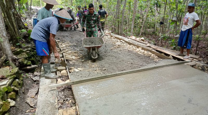 Di Kebut, Pengecoran Rabat Jalan TMMD ke-126 Reguler Kodim 0730/Gunungkidul di Candirejo Capai Progres Signifikan, Perkuat Akses Perekonomian Warga.