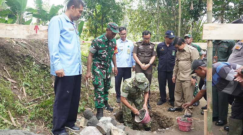Rangkaian kegiatan diawali dengan mengikuti vicon bersama Pangdam IV/Diponegoro dilanjutkan peletakan batu pertama oleh Pejabat Forkopimda Kulon Progo dan penyerahan bantuan 100 paket sembako secara simbolis kepada warga kurang mampu.