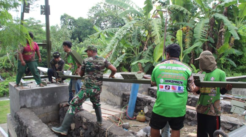 Sleman — Personel TNI dari Kodim 0732/Sleman dan Warga percepat Pembangunan Jembatan Gantung Garuda yang ada Padukuhan Klangkapan Margoluwih Seyegan Sleman.