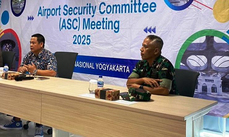 KULON PROGO. Kepala Staf Kodim 0731/Kulon Progo Mayor Cpl Sutarjo, menghadiri Rapat Airport Security Committee (ASC) ke-5 membahas Kesiapan Posko Natal tahun 2025, Tahun Baru 2026 dan Embarkasi Haji, di Ruang Rapat Sindutan Gedung Administrasi PT. AP I Bandara YIA Kulon Progo, Kamis (11/12/2025).