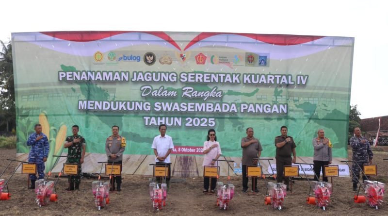Sleman. Kepala Staf Korem (Kasrem) 072/Pamungkas Kolonel Inf Dec Jerry Manungkalit, S.I.P. mewakili Danrem 072/Pamungkas menghadiri acara Penanaman Jagung Serentak Kuartal IV diselenggarakan oleh Polda DIY dalam rangka mendukung swasembada pangan tahun 2025