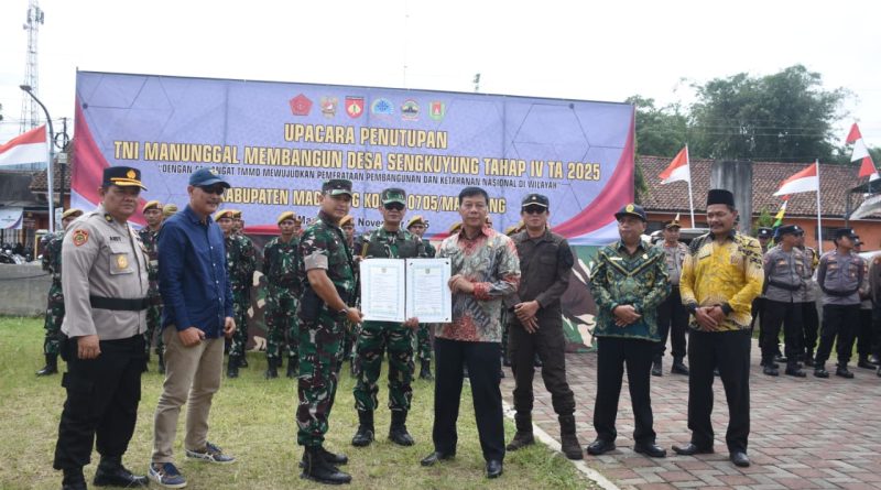 Magelang. Kepala Staf Korem (Kasrem) 072/Pamungkas Kolonel Inf Dec Jerry Manungkalit, S.I.P. mewakili Danrem 072/Pamungkas menghadiri Upacara Penutupan TNI Manunggal Membangun Desa (TMMD) Sengkuyung Tahap IV Tahun 2025 Kodim 0705/Magelang bertempat di halaman Balai Desa Banaran, Kecamatan Grabag, Kabupaten Magelang.