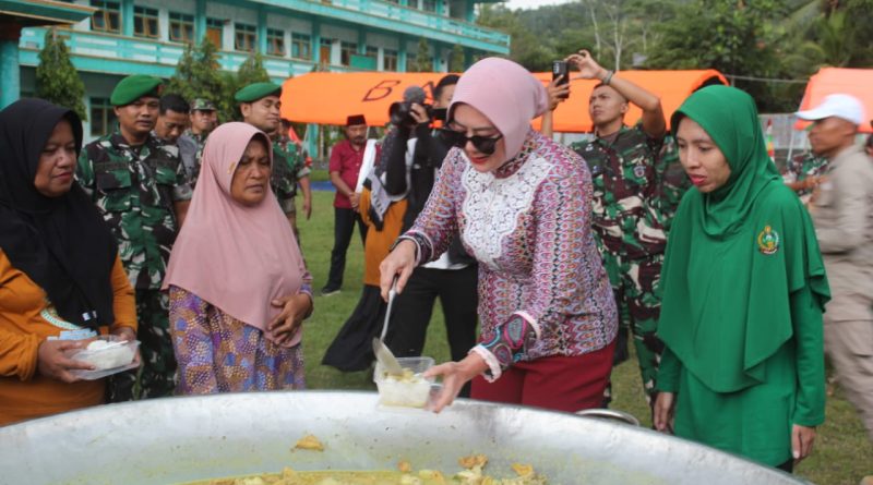 Ketua Persit KCK Koorcab Rem 072 PD IV/Diponegoro bersama Persit Kodim 0709/Kebumen Dukung “Makan Besar” Bersama Bobon Santoso di Lokasi TMMD