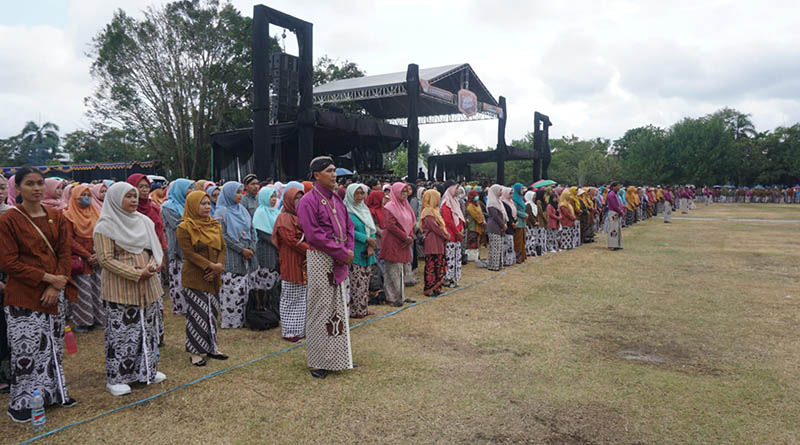 Selesai pelaksanaan upacara, dilanjutkan dengan pentas tari Wanara Sugriwo-Subali dengan melibatkan 7400 penari. (Pendim0731)
