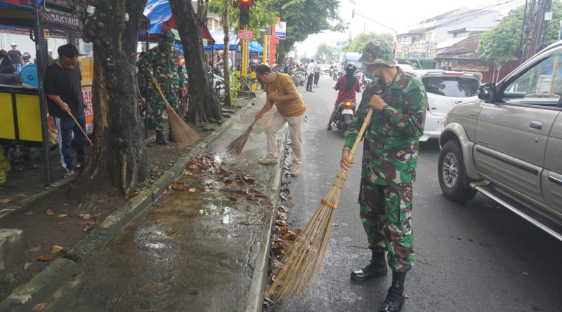 KULON PROGO. Kodim 0731/Kulon Progo bersama Pemerintah Kabupaten dan Polres Kulon Progo, melaksanakan Korve Gerakan Kulon Progo ASRI, di Area Pasar Bendungan, Kapanewon Wates, Kabupaten Kulon Progo.