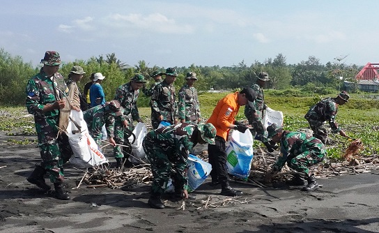 Kodim 0731/Kulon Progo Selenggarakan Karya Bakti Teritorial Prima Pemberian Paket Sembako dan Pembersihan Pantai