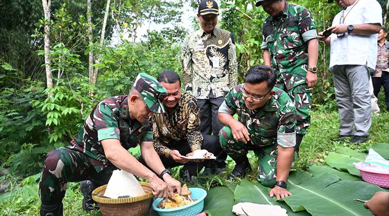 Kegiatan tersebut dihadiri oleh jajaran TNI, pemerintah desa, tokoh masyarakat, serta warga sekitar yang turut memanjatkan doa bersama demi kelancaran pembangunan jembatan.