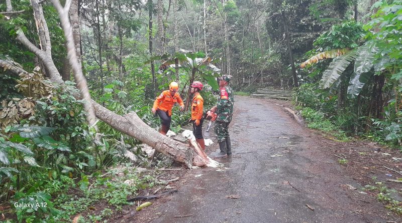 Wonosobo – Sebuah pohon tumbang akibat hujan lebat disertai angin kencang yang mengguyur wilayah Kaliwiro. Pohon tumbang tersebut menutup sebagian badan jalan penghubung Desa Tanjunganom – Grugu via Ngabean, Marong, Grugu, Kaliwiro, Wonosobo, tepatnya di koordinat 7°27’54″S 109°49’46″E.