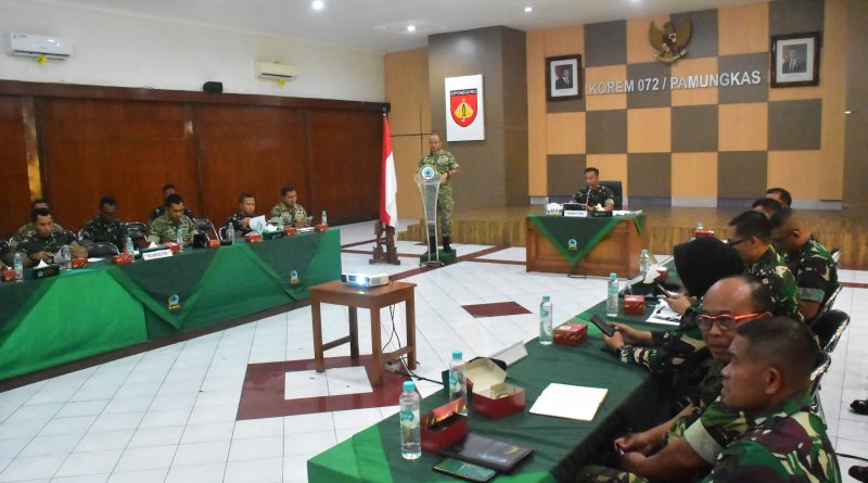 Kegiatan tersebut dipimpin langsung oleh Danrem 072/Pamungkas, Brigjen TNI Yuniar Dwi Hantono, S.Sos., M.Si., M.Sc., serta diikuti para Kasi Korem 072/Pamungkas, para Dandim, serta para Dan/Ka Satdisjan jajaran Korem 072/Pamungkas.
