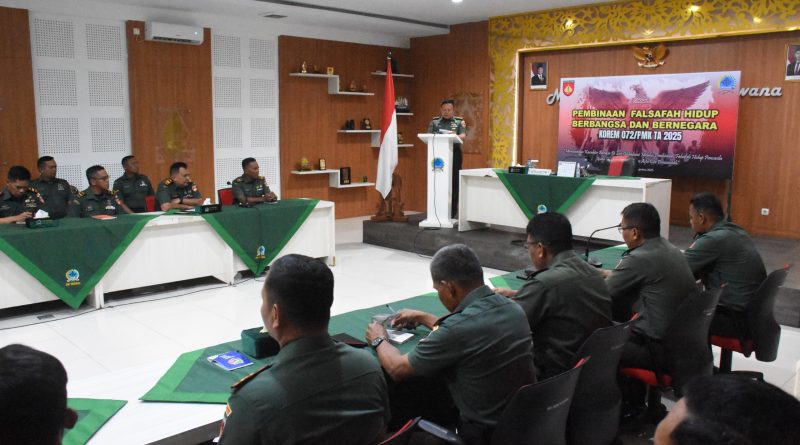 Yogyakarta. Korem 072/Pamungkas menyelenggarakan kegiatan Pembinaan Falsafah Hidup Berbangsa dan Bernegara TA 2025 bertempat di Ruang Katamso Makorem 072/Pamungkas, Jalan Reksobayan No. 4, Ngupasan, Gondomanan, Kota Yogyakarta, Rabu (20/8/2025).