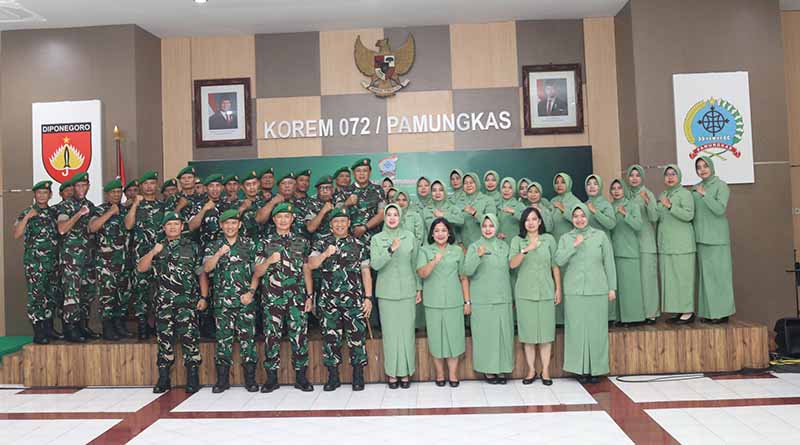 Turut hadir dalam upacara Para Kasi Korem 072/Pamungkas, Ketua Persit KCK Koorcabrem 072/Pamungkas Ny. Syahfitri Bambang Sujarwo, Perwira Korem 072/Pamungkas dan Pengurus Persit.(Penrem072/Pmk)