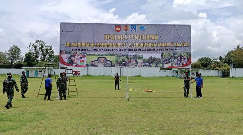 Sleman — Lapangan Tentara Geni Pelajar (TGP) yang berada di Kalurahan Margoluwih Seyegan Sleman bersolek siap menyambut momen penting,Rabu (5/11/2025), yaitu penutupan TNI Manunggal Membangun Desa (TMMD) Sengkuyung Tahap IV Kodim 0732/Sleman Tahun 2025 yang akan digelar pada hari Kamis (6/11/2025).