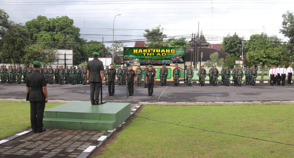 Sleman — Danramil 11/Depok Kodim 0732/Sleman Mayor Inf Istachori sebagai Inspektur Upacara pada Peringatan Hari Juang TNI AD Tahun 2025 yang diselenggarakan di Makodim 0732/Sleman,Senin (15/12/2025).