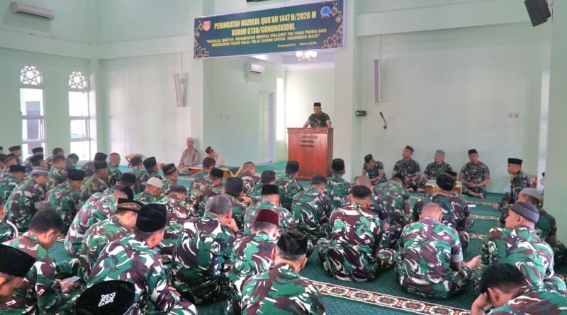 GUNUNGKIDUL – Keluarga besar Komando Distrik Militer (Kodim) 0730/Gunungkidul menyelenggarakan peringatan Nuzulul Qur’an 1447 Hijriah dengan penuh khidmat. Kegiatan yang menjadi momentum refleksi spiritual ini dilaksanakan di Masjid As Salamah, Makodim 0730/Gunungkidul, pada Kamis (12/03/2026).