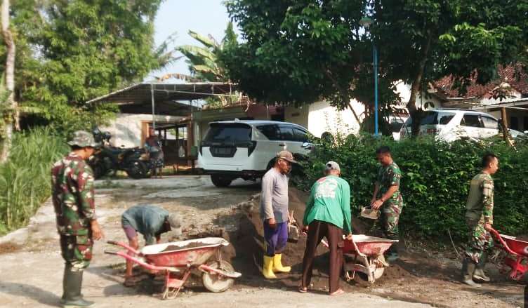 Babinsa Jatisarono menyampaikan, pada hari ini pengerjaan difokuskan pada penyiapan atau melangsir material pasir dan batu split dari titik pengedroppan ke tempat yang dekat dengan lokasi jembatan yang akan dibangun.