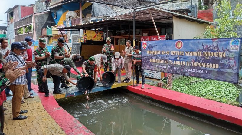 Yogyakarta – Dalam rangka menyambut HUT TNI ke 80 dan Kodam IV/Diponegoro ke 75, Komandan Kodim 0734/Kota Yogyakarta, Kolonel Inf Arif Setiono, S.I.P., M.H.I., menebar sebanyak 600 Kg benih ikan Nila di Bendhung lepen, Mrican, Jl. Tunggul Nogo No.338, Giwangan, Kemantren Umbulharjo, Kota Yogyakarta. Jumat (19/09/2025).