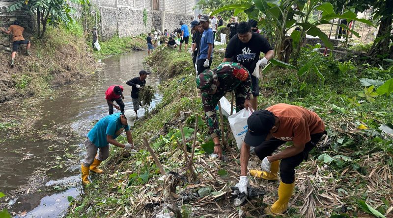 Sambut HUT TNI ke 80, Koramil 11/Depok Sleman Gelar Karya Bakti Bersih Sungai