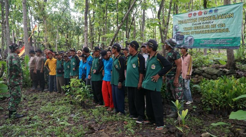 Satgas TMMD Ke-126 Reguler Kodim 0730/Gunungkidul, Gelar Aksi Penghijauan, Perkuat Ketahanan Lingkungan Di Kalurahan Candirejo.