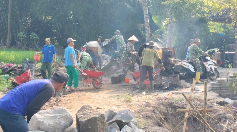 Sleman — Terik Panas Matahari bukan menjadi halangan bagi Pasukan dan Masyarakat yang tergabung dalam Satgas TMMD Sengkuyung Tahap III TA 2025 Kodim 0732/Sleman dalam memberikan darma baktinya kepada masyarakat dengan mengerjakan sasaran fisik berupa pembuatan jalan baru, pembangunan talud jalan serta pembuatan gorong-gorong bertempat di Sindumartani Ngemplak Sleman.