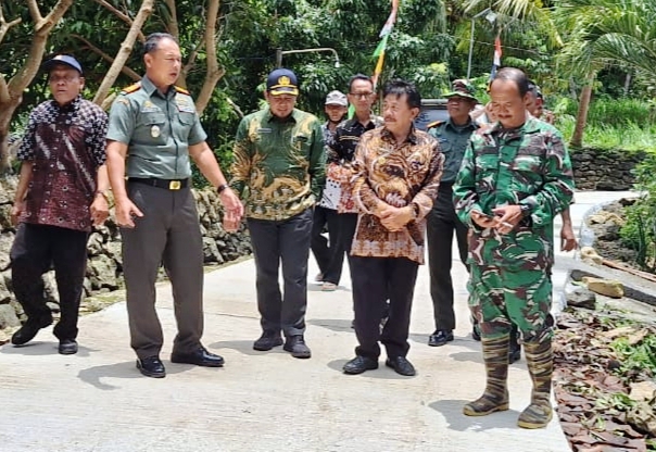 Kunjungan Tim Wasev TMMD Korem 072/Pamungkas untuk meninjau langsung pelaksanaan dan hasil pengerjaan sasaran fisik kegiatan TMMD meliputi Jalan Rabat Beton 545 m x 3 m x 0,12 m, Pembuatan Drainase 50 m x 1 m x 0,70 m dan Lantainisasi Pos Roda 5 m x 5 m x 0,12 m. Peninjauan juga dilakukan di Pos Kotis untuk pemeriksaan administrasi dan dokumentasi pelaksanaan kegiatan TMMD.