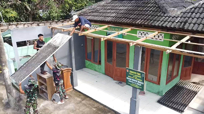 TNI Dan Warga Bergotong Royong Rehab Mushola Di Lokasi TMMD Reguler Ke-126 Kodim 0730/Gunungkidul