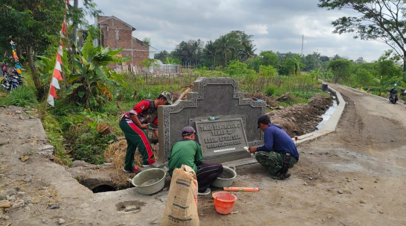 Tugu Prasasti yang berdiri kokoh dan artistik itu terletak tepat di persimpangan jalan, dimana lokasi itu dijadikan sasaran TMMD dari Kodim 0732/Sleman.
