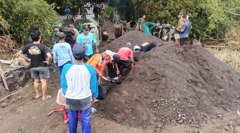 Setiap hari warga tersebut bergabung dengan personil TNI dari Kodim 0732/Sleman dalam membuka akses jalan Padukuhan Konteng menuju Padukuhan Jumeneng.